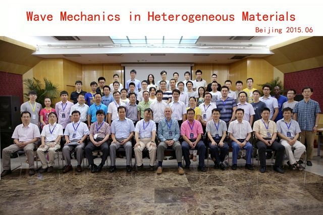 胡更开教授、美国密苏里大学黄国梁教授和美国罗格斯大学NORRIS教授共同主持,针对非均质材料波动力学的问题进行了深入的探讨,与会教授根据自己的研究领域,为广大师生作了19篇报告,其中包括“Elastic shells as acoustic metamaterial elements”、“On the elastodynamic homogenization theory of Willis”和“Sound propagation in micro-tubes with surface roughness”等学术报告。