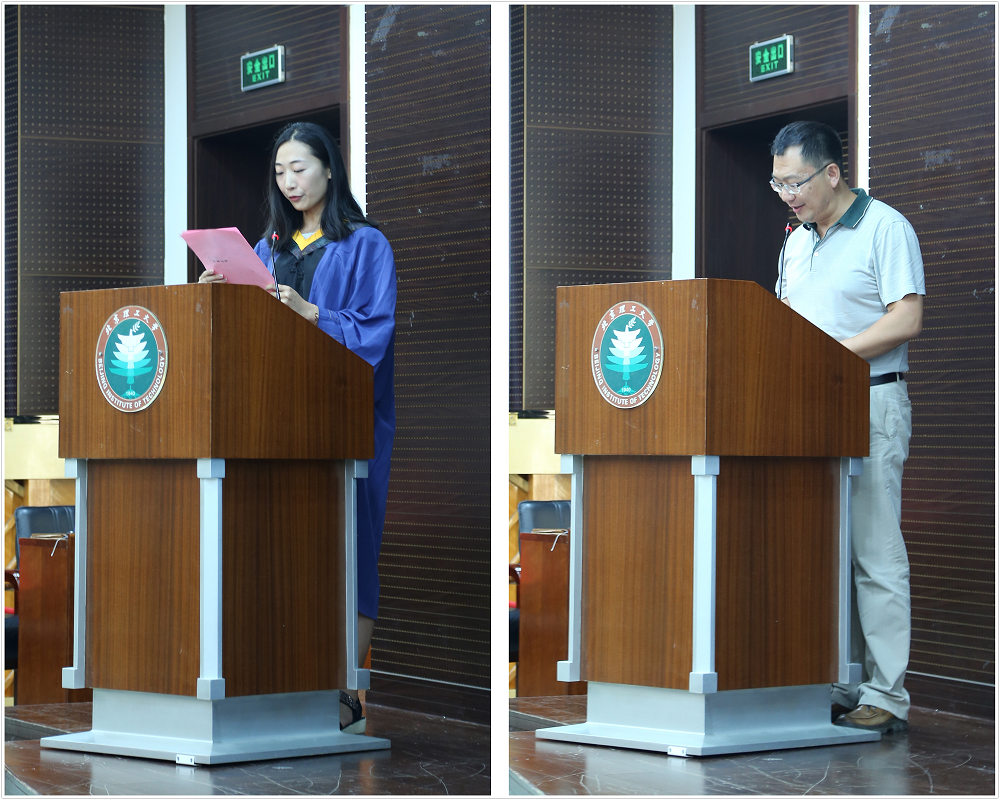 毕业典礼在庄严的国歌声中开始。首先由副院长王宁飞宣读学位授予决定:经学位委员会审核通过,宇航91网站