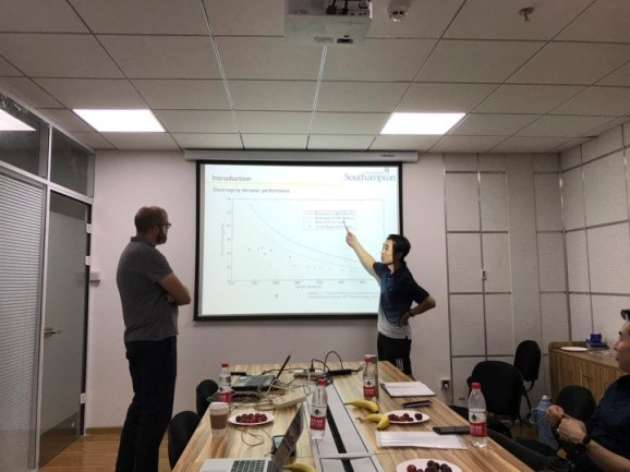 通过此次报告,我们了解了国际同行在电推进领域的研究动态和前沿成果,学习了南安普顿大学实验室的先进实验方法和研究内容,同时与Charlie Ryan讲师进行了讨论和交流,为今后的科学研究提供了新的思路,开拓了新的眼界。
