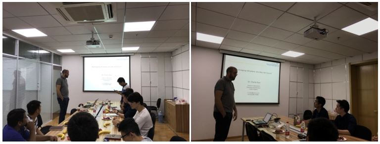 电喷雾推力器被誉为下一代最有前途的电推进技术之一,它能提供微牛级的小推力,主要适用于编队飞行任务的精细姿态控制。Charlie Ryan主要针对电喷雾推力器技术的原理、研究现状以及研究中的存在的四大问题发表了自己的看法。报告结束后,参会老师和同学就原理、实验技术等各方面问题与Charlie Ryan讲师进行了深入讨论与交流,Charlie Ryan讲师针对本课题组实验中遇到的问题进行了详细的指导,提出了许多有用的建议。