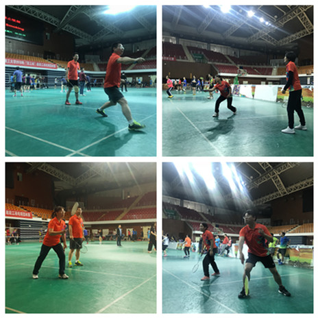 本次团体赛包括男双(2组)、女双、混双(2组),采用混合赛制,进行小组循环赛、淘汰赛、半决赛和决赛。赛前教职工进行了一次集中训练,认真备战;上午小组循环赛中大家精神饱满,顽强拼搏、相互激励,获得两场胜利,首次出线;下午晋级淘汰赛中大家不畏强敌、敢打敢拼,最终遗憾失利,遭到淘汰;但大家的拼搏精神赢得了在场教职工的喝彩。
