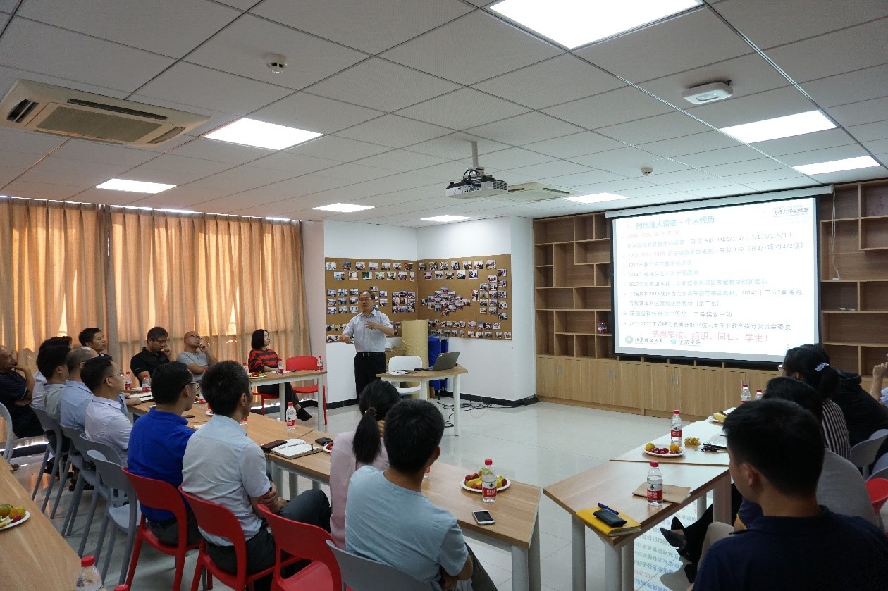 青年教师参加了活动,党委教师工作部李飞老师应邀出席本次活动。唐胜景教授以《催人奋进时代青年教师发展的一点体会与思考》为题,结合自身成长历程,向大家讲述了改革开放40年来北理工的发展,让青年教师对学校有了更深入的认识;唐胜景教授结合在教学方面的经验,讲述了如何在教学科研中做好人才培养的工作,并勉励青年教师要不忘初心、勇于担当、勤奋前行。