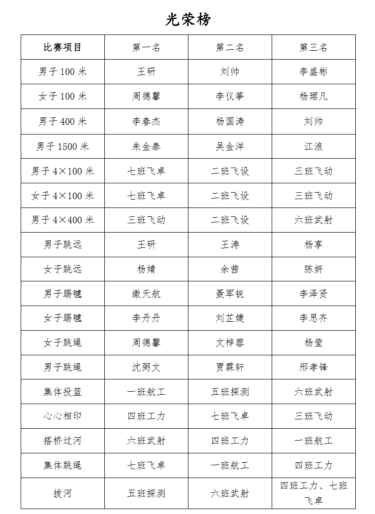 附运动会光荣榜: