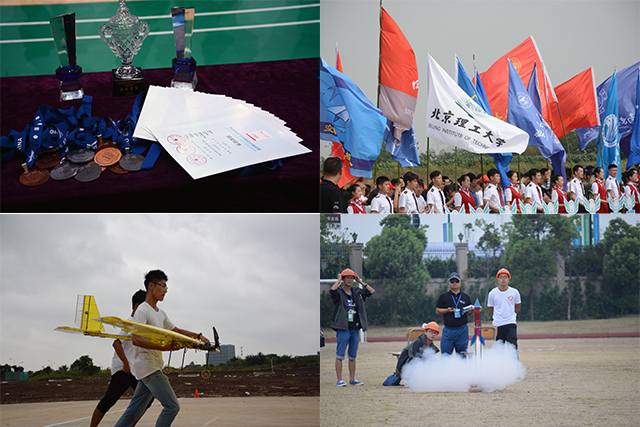 立足于学生科技创新实践基地,利用学生课余时间,组织航模队队员们自主设计、制作了参赛作品,并结合试验结果对原有作品进行改进、调整,使各项目模型皆达到了比赛要求。近一周的比赛过程中,所有参赛选手克服各种困难,默契协作,调整心态,沉着应战,取得了优异的成绩。其中限距载重空投项目稳定发挥,取得了两个一等奖并摘得了团体铜牌;固体火箭项目取得了个人银牌的巨大突破;电动滑翔机两个机组均取得了一等奖;对地侦察与打击项目组收获了一个一等奖和一个三等奖;垂直起降载运则是获得了两个三等奖。另外,在竞赛科技创新评比中,我校创新项目从104件创新作品中脱颖而出,揽获一等奖一个(第三名)和二等奖一个。北理工航模队在比赛中展现了良好的竞赛风貌、优秀的创新精神及出色的团队配合,获得了组委会及评审专家的高度赞扬和一致好评。取得这些成绩离不开教务处、校团委、实验室与设备管理处等单位的大力支持,也离不开指导教师和参赛选手们付出的大量心血。