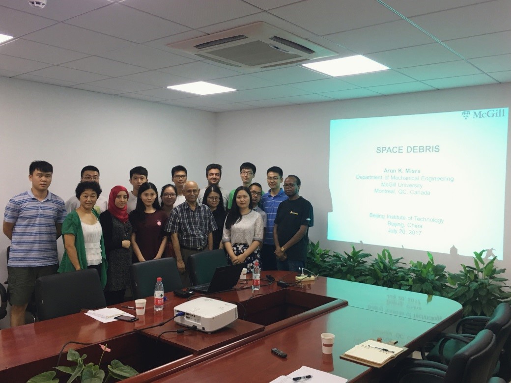 邀请,加拿大麦吉尔大学机械工程系Arun Misra教授于2017年7月11日至24日期间在我院进行学术访问与交流,并在20日下午为我院师生作了一场题为《空间碎片》的精彩学术报告。学术报告会由张景瑞教授主持。
